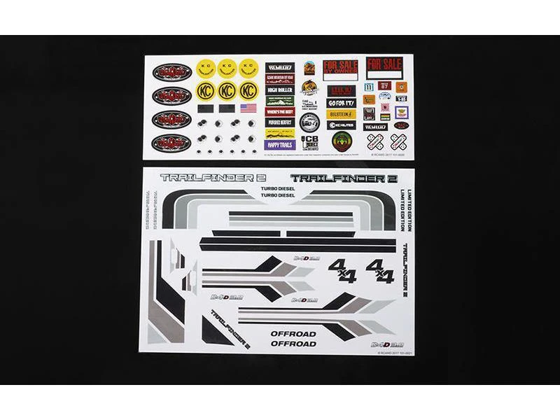 Versehen Sie Ihren Trailfinder 2 mit den RC4WD Aufklebern und verleihen Sie so dem Modell ein einzigartiges Design.
